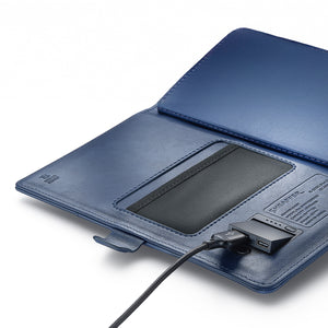 The Sheaffer Superbook Mini 8000mAh Power Bank Organizer – Blue is a compact, stylish, and highly functional accessory tailored for professionals who value organization and efficiency. Encased in a vibrant blue finish, this organizer seamlessly integrates a high-capacity 8000mAh power bank, supporting both wired and wireless charging to keep your devices powered throughout the day. Its thoughtfully designed interior includes multiple utility compartments, such as card slots, an ID window, a business card holder, a utility pouch, a passport pocket, and a pen holder, along with two replaceable Sheaffer Quikfill notebooks. The magnetic closure ensures secure storage, while the BIS certification guarantees compliance with safety standards. Whether you're attending meetings, traveling, or working remotely, the Sheaffer Superbook Mini in Blue is your reliable companion for productivity and organization.