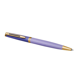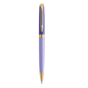 Elegant and expressive, the Waterman Hémisphère Colour Blocking Ball Pen – Purple GT is a bold celebration of individuality. Featuring a sophisticated deep plum cap paired with a soft lavender barrel, this pen radiates modern luxury and artistic flair—beautifully accented with warm gold trim for a refined finish.