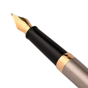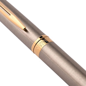 Sleek, polished, and effortlessly refined, the Waterman Hémisphère Fountain Pen – Stainless Steel GT is a timeless classic crafted for those who value elegance in simplicity. Featuring a brushed stainless steel body paired with warm 23K gold-plated trim (GT), this pen balances modern professionalism with traditional luxury.